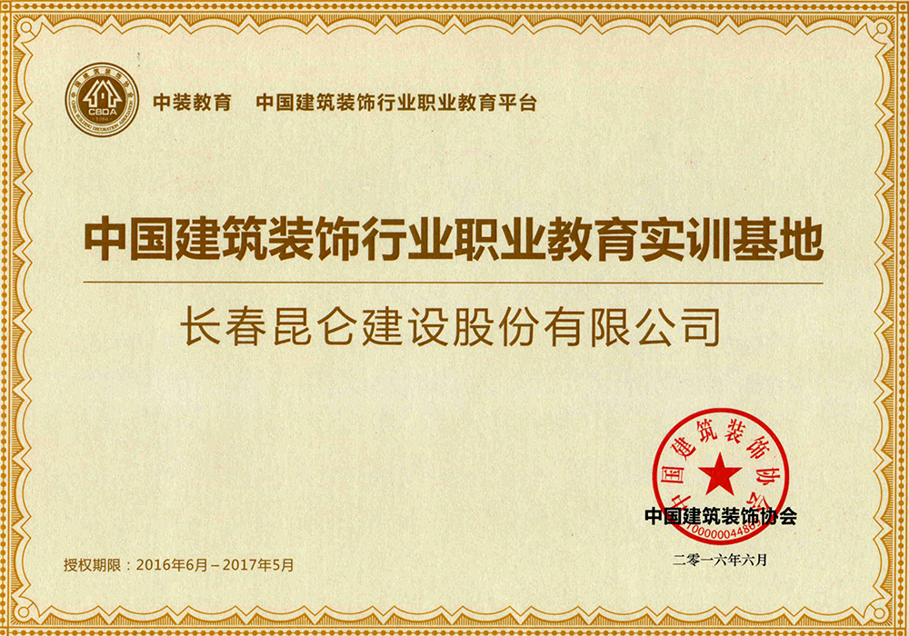 建筑装饰行业职业教育实训基地奖