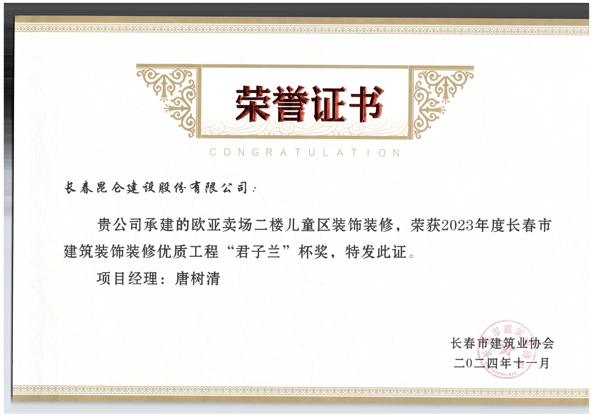 长春市建筑装饰装修优质工程“君子兰”奖
