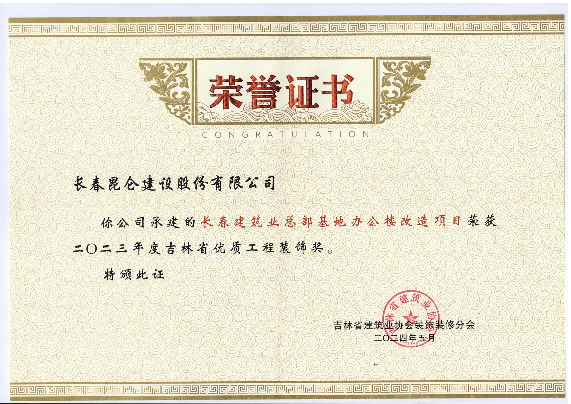 吉林省优质工程装饰奖