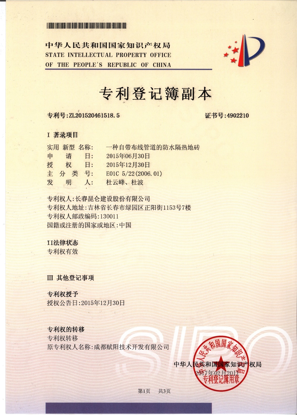 专利证书